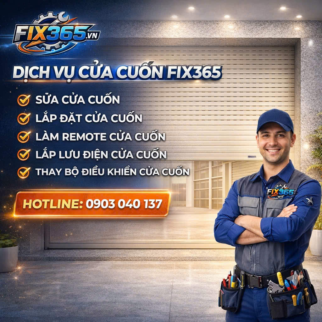 Để được tư vấn chi tiết, khách hàng có thể tham khảo thêm thông tin trên website dịch vụ cửa cuốn FIX365 hoặc xem dịch vụ sửa cửa cuốn tại TP.HCM, đồng thời kết nối qua fanpage FIX365 để nhận hỗ trợ nhanh.