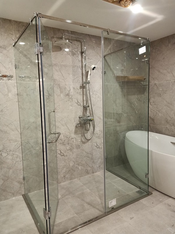Về thi công, bề mặt tường và sàn phải được xử lý phẳng, vuông góc, chống thấm tốt trước khi lắp đặt. Kích thước kính được đo đạc sau khi hoàn thiện ốp lát để hạn chế sai số. Các mép kính tiếp xúc tường cần có khe hở kỹ thuật phù hợp để bơm keo silicone, tránh siết cứng gây ứng suất. Đơn vị thi công chuyên nghiệp thường kiểm tra độ kín nước bằng cách phun thử sau khi hoàn thiện, đồng thời hướng dẫn khách hàng cách sử dụng, vệ sinh và bảo dưỡng bản lề, ray trượt định kỳ.